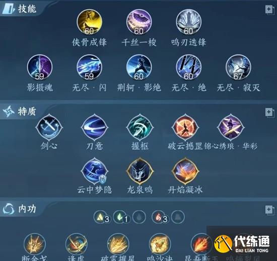 内功仅供参考,可根据自己的词条灵活搭配。鸣镝裂风、鸣沙诀必带,昆吾断玉不是词条特别不好的话,也需要带一下