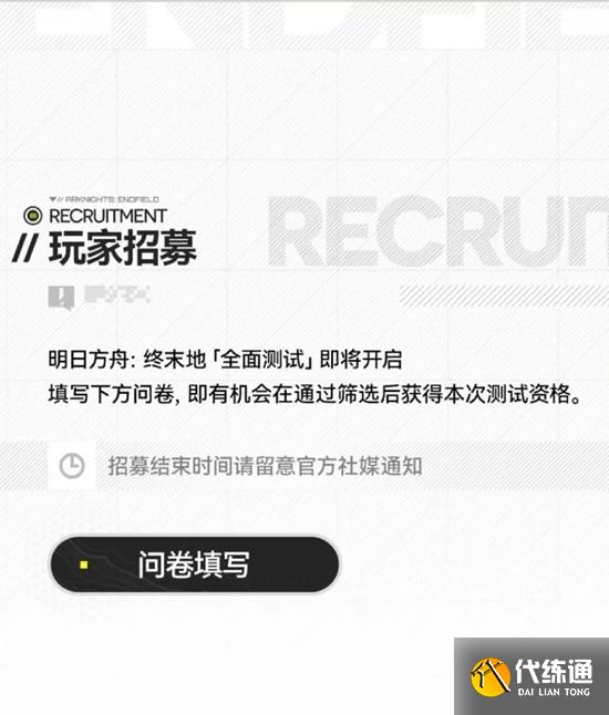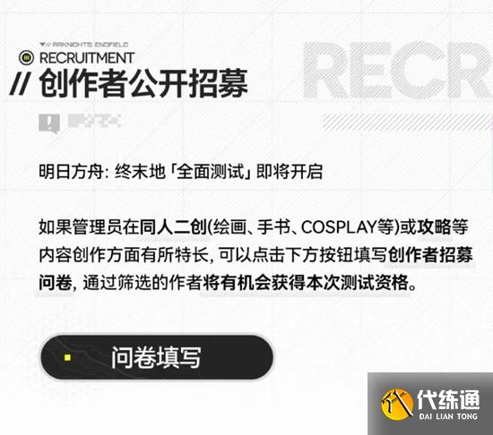玩家专属通道:填份招募问卷,筛选通过直接解锁测试资格