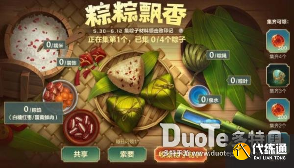 在活动期间,参与粽粽飘香活动,每日收集粽子材料包能够制作粽子