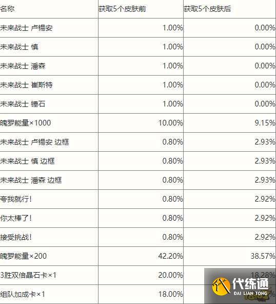 6、获得全部5个皮肤后,幸运值将不再累计,也不会对后续充能产生影响;