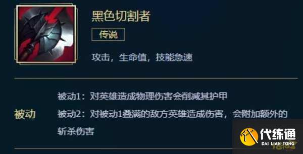 3、第三件选择黑切,塞纳的平A和技能可以很好的叠加黑切的被动效果,削弱敌方的护甲,可以让队友打出更高的伤害;