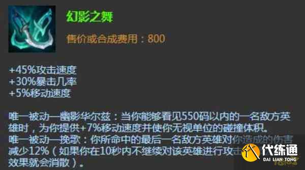 4、第四件可以选择幻影之舞,幻影之舞的被动可以提供一个护盾,增加塞纳的容错能力,起到保护作用。
