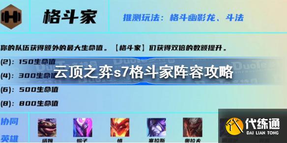 游戏今日上线了S7玩法,那么在这个版本中的格斗家阵容该怎么搭配呢,下面就一起来看看具体的搭配攻略分享吧,感兴趣的小伙伴千万不要错过哦。