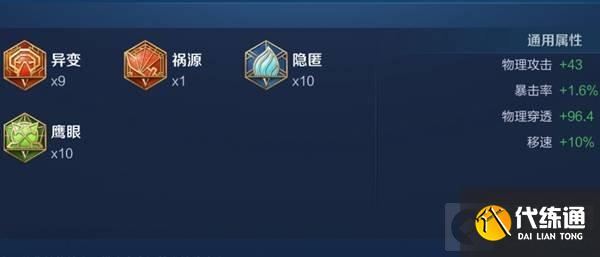 4、第二套铭文搭配:10异变、10隐匿、10鹰眼。