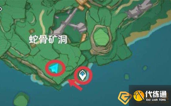 2、根据提示找到蛇骨矿洞,然后传送到下方的锚点处。