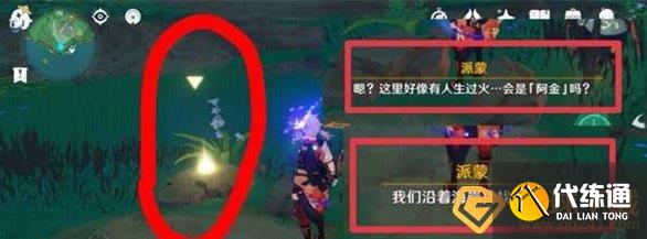 4、在靠近闪光点的地方,你会得知阿金曾经路过这里,他会提示我们去海岸边找找看。