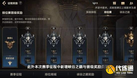 此外,本次赛季征程中新增了峡谷之巅与晋级奖励页签。