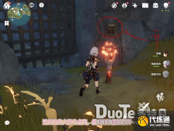 可见四个火把,点燃后解锁中间火元素方碑,点亮方碑!