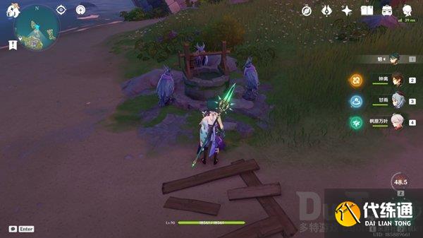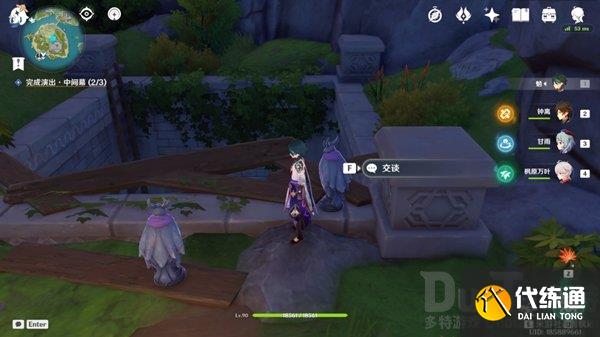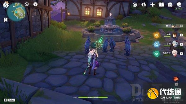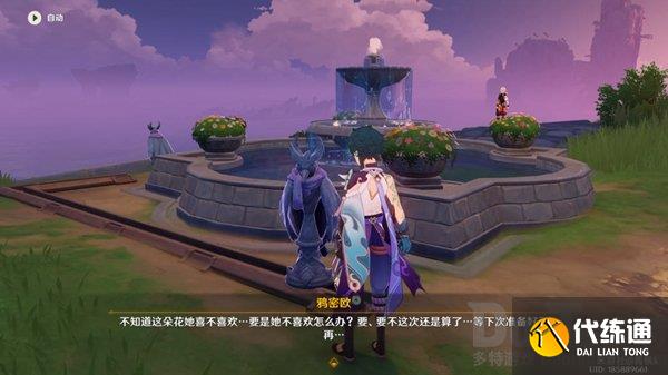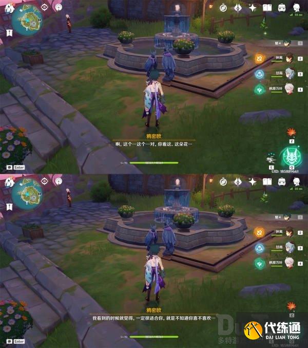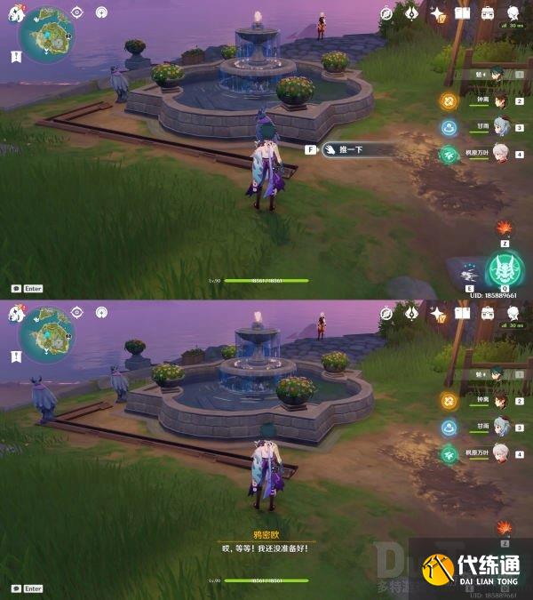 来到双双岛传送点,沿路径来到万叶所在位置的喷泉处,可以看到两只夜鸦雕像