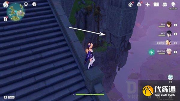 6、我们还是先传送到秘境传送点,出来之后,向东看,在箭头位置有一个洞口