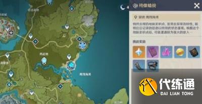 1、玩家首先来到晨曦酒体验过剧情,再点击蒙德的鹰翔海滩的残像暗战图标。
