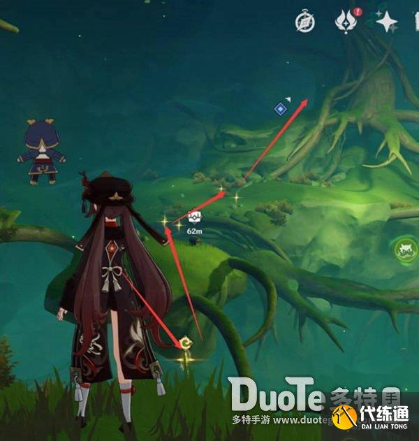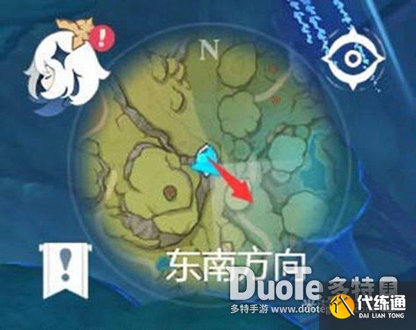 2、来到传送点后,朝着地图东南方向看。朝着我插柱子的那里走,走到了就停在那