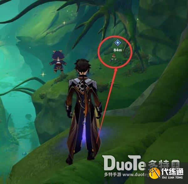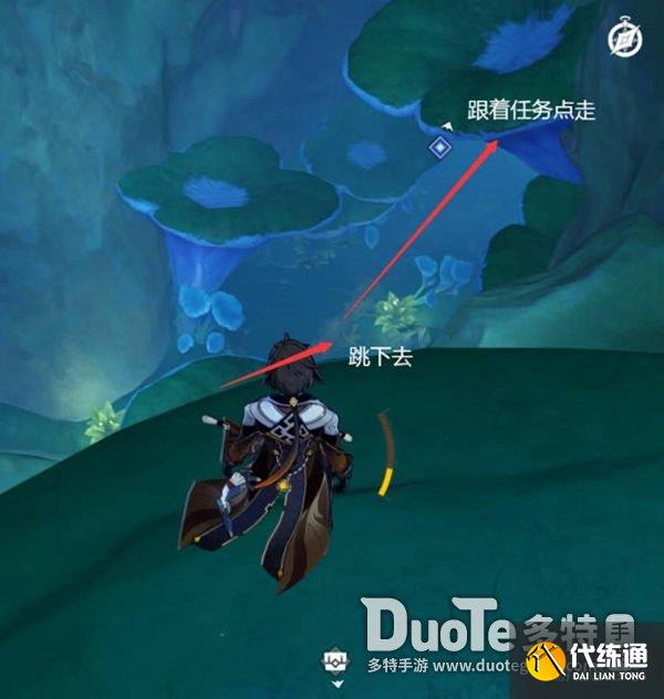 5、对话结束后,他会让你去一个山洞里面。跟随任务提示来到这里,然后跳下去一直朝里面走,单行道。走到头就能遇到他了,触发任务