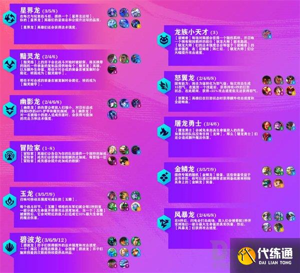 同时还新增了几个羁绊,分别是黯灵龙,还有巨岩龙,碧波龙,龙族小天才这几个