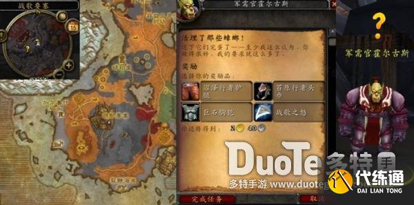 完成NPC:军需官霍尔古斯(北风苔原,战歌要塞)