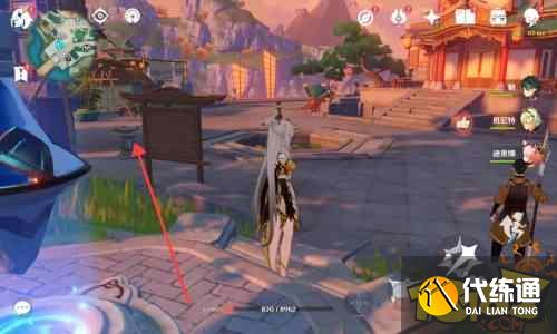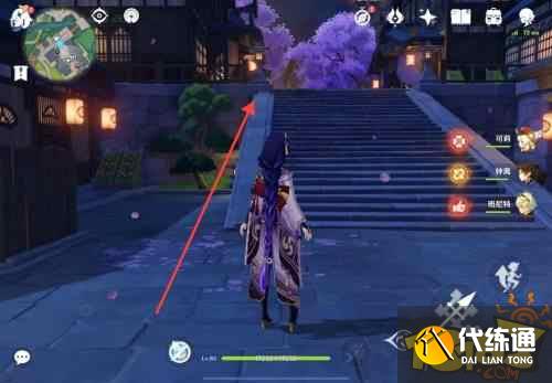 首先进入原神,打开地图传送至稻妻城,沿着箭头的方向向前走;