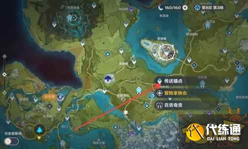 然后再打开地图,传送至璃月港的如图所示传送点;