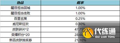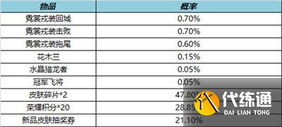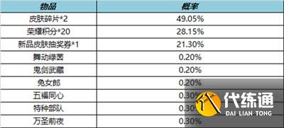 礼盒内含皮肤碎片*1,附赠奖励概率公示如下: