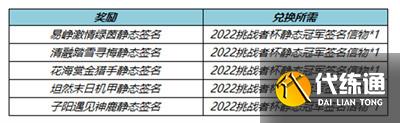 每个2022挑战者杯动态冠军签名信物可兑换一个动态签名,每个2022挑战者杯静态冠军签名信物可兑换一个静态签名