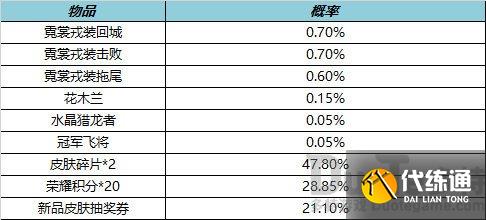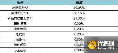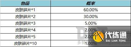 礼盒内含皮肤碎片*1,附赠奖励概率公示如下: