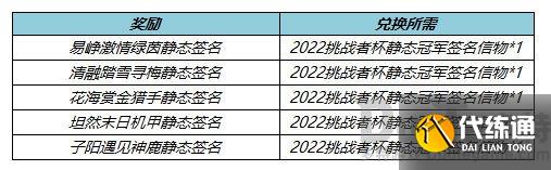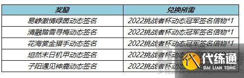 每个2022挑战者杯动态冠军签名信物可兑换一个动态签名,每个2022挑战者杯静态冠军签名信物可兑换一个静态签名