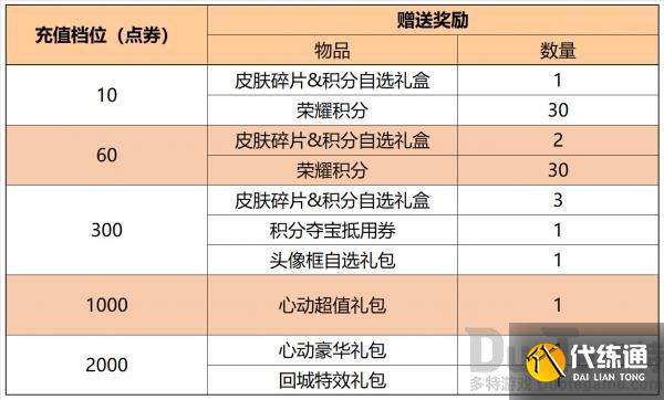 皮肤碎片&积分自选礼盒:打开礼包可任意选择以下奖励之一:荣耀积分*10或皮肤碎片*1