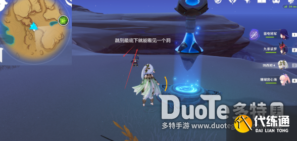 4、来到传送点朝着地图的东南方向走到悬崖,直接跳到最底下,然后在我们左手边就有个山洞进去