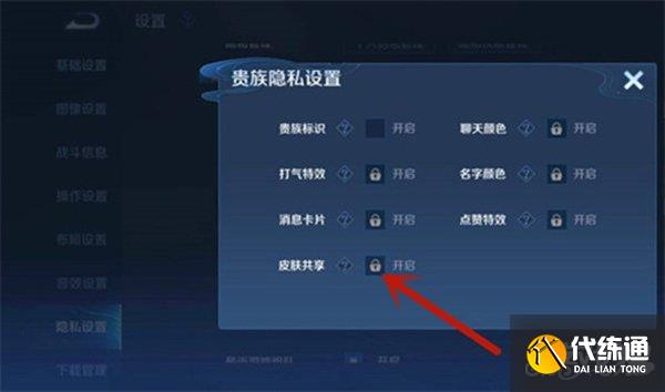 王者荣耀V10玩家只需要开启图中功能可以直接共享皮肤,但是有一点但要注意,那就是皮肤共享发你,在每周好友只能使用5次皮肤共享。