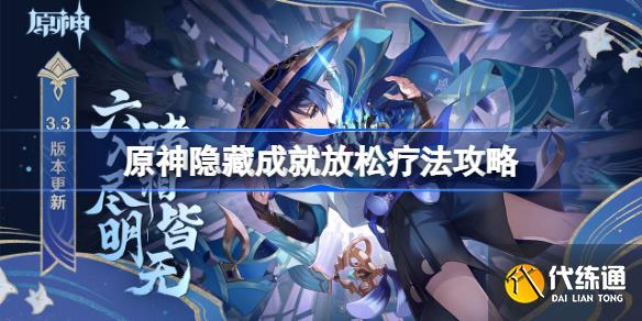 原神3.3版本更新后新增了不少内容,其中就有新的隐藏成就若干,下面小编为大家带来原神隐藏成就放松疗法攻略,感兴趣的小伙伴一起了解一下吧。