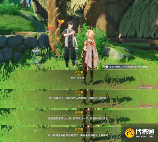 前往药田给因为干活而拉伤胳膊的古尔根送药
