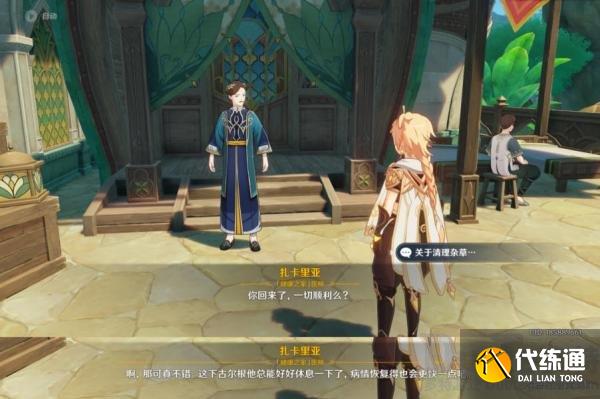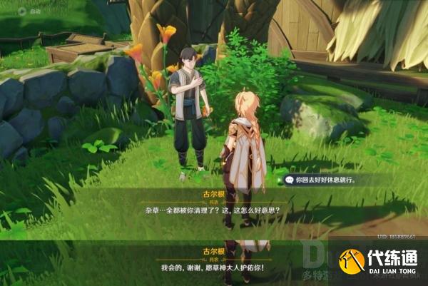 这里任务会提示回去找扎卡里亚对话,不要理会,根据古尔根所说清理杂草才会去休息,我们来主动帮忙清理一下