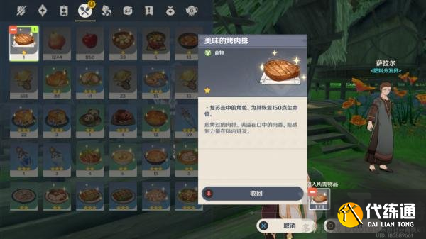 如果背包里没有烤肉排,可以来到传送点这边有个烹饪点做一份就好