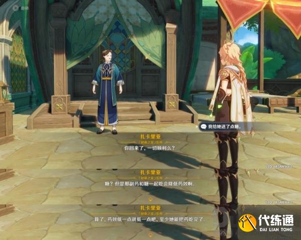 出于我们是监督者的原因,我们再次与阿兹拉对话,给阿兹拉提交一份糖帮助她把药服下