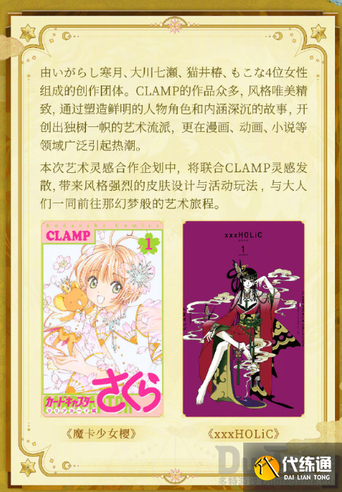 本次艺术灵感合作企划中,将联合CLAMP灵感发散,带来风格强烈的皮肤设计与活动玩法,与大人们一同前往那幻梦般的艺术旅程。