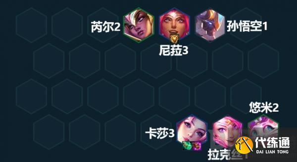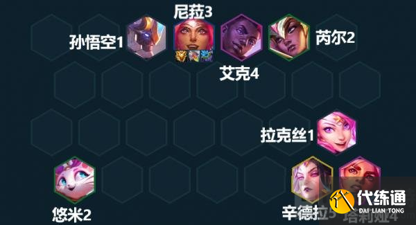 阵容组成:孙悟空、尼菈、艾克、芮尔、拉克丝、辛德拉、塔莉娅、悠米
