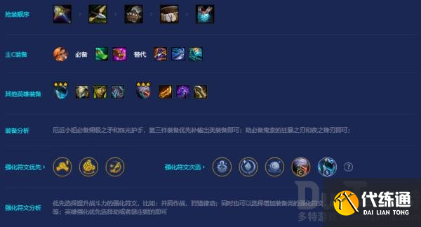 厄运小姐必备朔极之矛和珠光护手,第三件装备优先补输出类装备即可;劫必备鬼索的狂暴之刃和夜之锋刃即可;