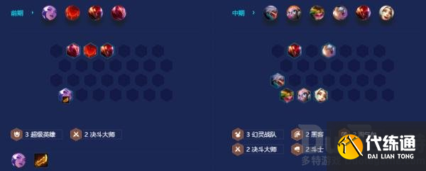 2-5升五人口,优先用超级英雄搭配决斗大师过渡,也可以用四决斗大师或者薇恩体系过渡;
