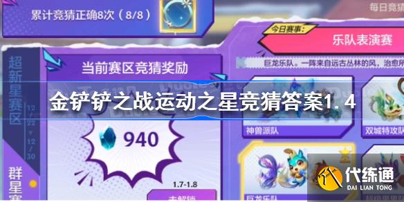 以上就是金铲铲之战运动之星1.4竞猜答案分享了,看到这里的玩家快进入游戏中去完成挑战吧。