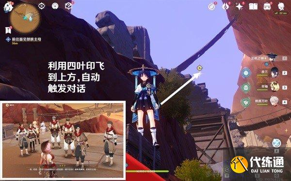 将视角往上拉,就能看到一个四叶印,飞到上方后自动进入剧情对话。我们能看到一个建模精致的镀金旅团成员,这应该就是芭别尔了。