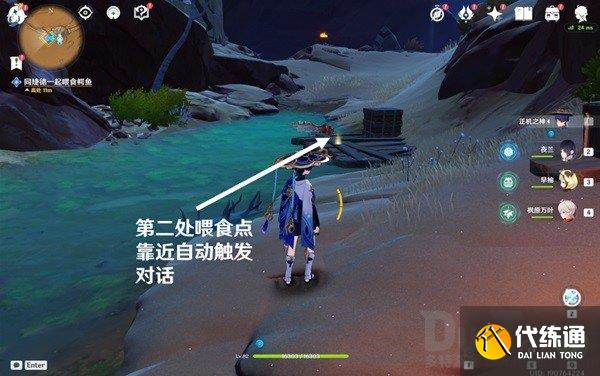 顺着河道往西走就能看到第二处喂食点了,靠近自动触发对话。