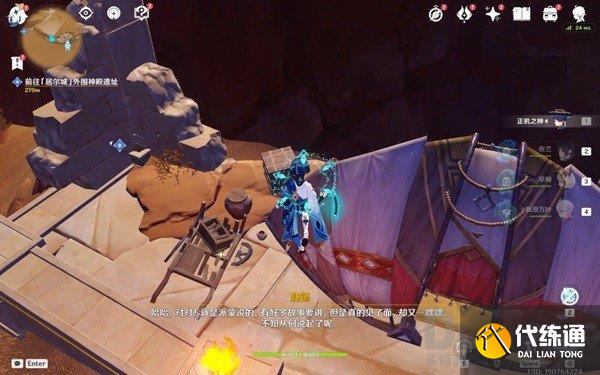 跟随指引,在巨大遗迹的边上看到一个帐篷,那里就是婕德的住处了,靠近自动触发剧情对话。得知她想探索前方未知的区域并找到【永恒绿洲】,作为朋友我们定要助她一臂之力啦。从接下来的对话中得知,我们要前往【居尔城】寻找线索。对话结束即可完成该任务。