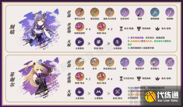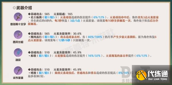 6. 除以上列出的武器外,还可以考虑薙草之稻光(55.1%充能)、天空之脊(36.8%)等充能武器,但是5星武器直接搭配4星辅助角色较为奢侈,需要选择性考虑。