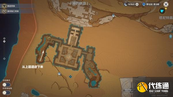 (5)来到地下传送点,先借助四叶印飞到上层,之后向西走,残页在下方遗迹的角落