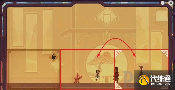 开始演出后,交换妹妹和花瓶所在的方块,然后等角色触碰到花瓶往回走时,交换花瓶和妹妹的方块即可。