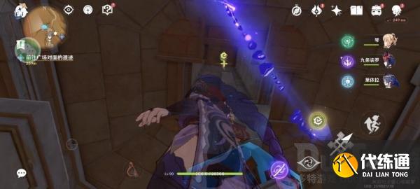 2.进去后直走到中间塔下抬头,草神瞳就在上面。