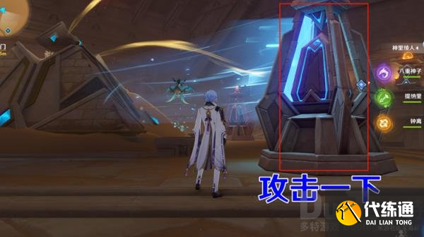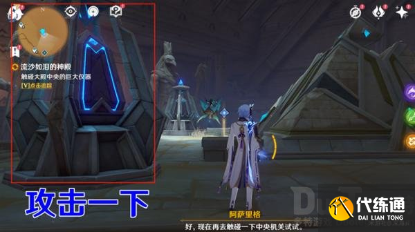 ●然后到左侧的符文机关处,攻击机关一下使开门机关的沙堆消融,打开开门机关