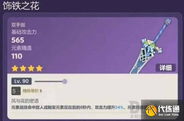 2、饰铁之花属性(90级)565攻击力,110元素精通;