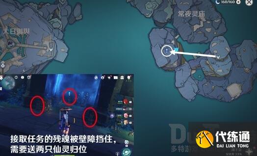 1、完成任务[许伯利翁哀歌]。将渊下宫转换为[常夜状态],传送常夜灵庙,到图中位置,解开屏障,对话接取任务。屏障前有两个仙灵座。