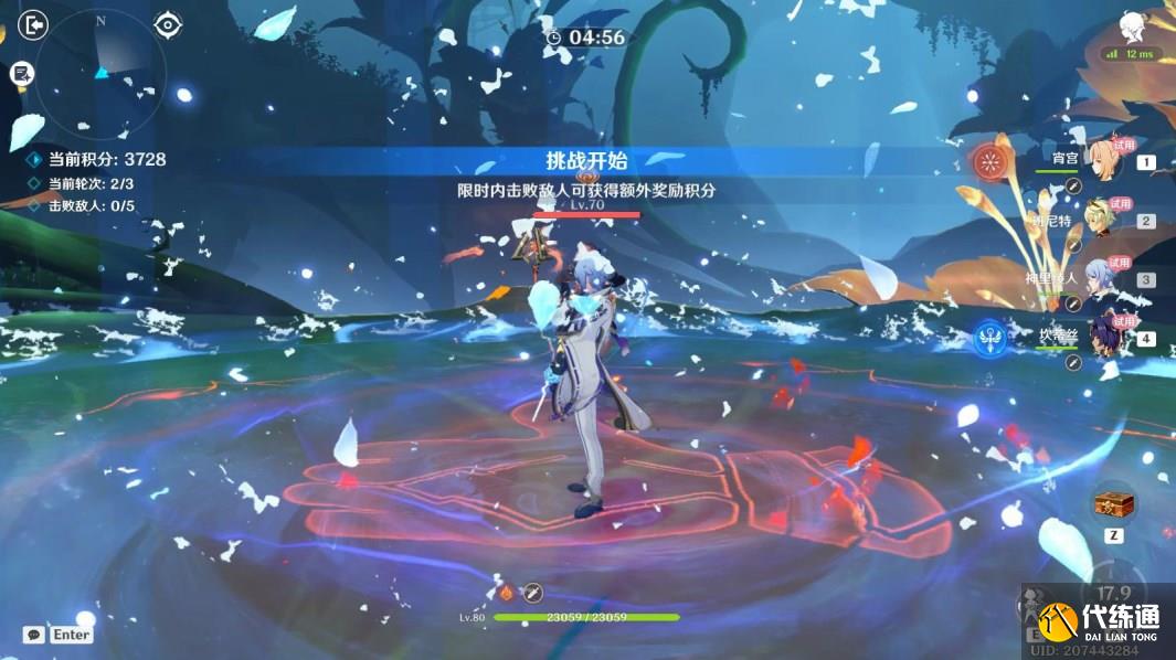 4、开启挑战,绫人Q,坎蒂丝Q接E,绫人EAAA。如此循环。