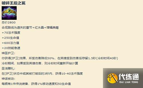 破碎王后之冕是英雄联盟即将推出的新的法师装备,这个装备大大的提高了法师的生存能力,当对线高爆发的刺客英雄时可以出这个装备,下面来看看小编整理多的破碎王后之冕装备介绍吧。